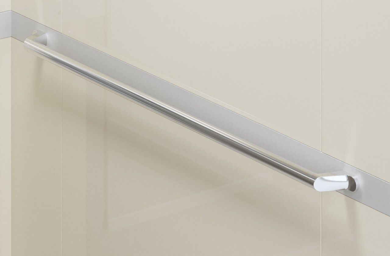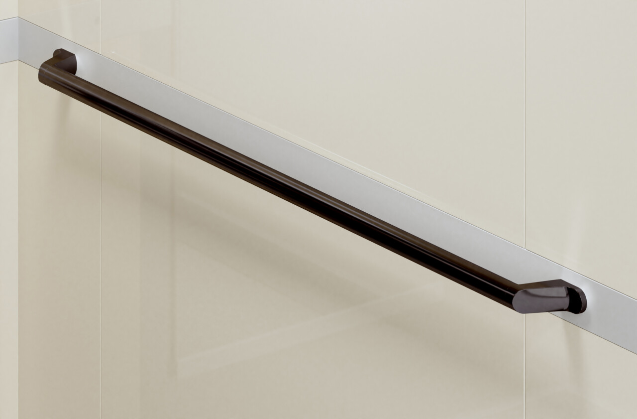 Handrails can be positioned on one or three walls, placed on stainless steel profile. You can also order a cabin without a handrail.