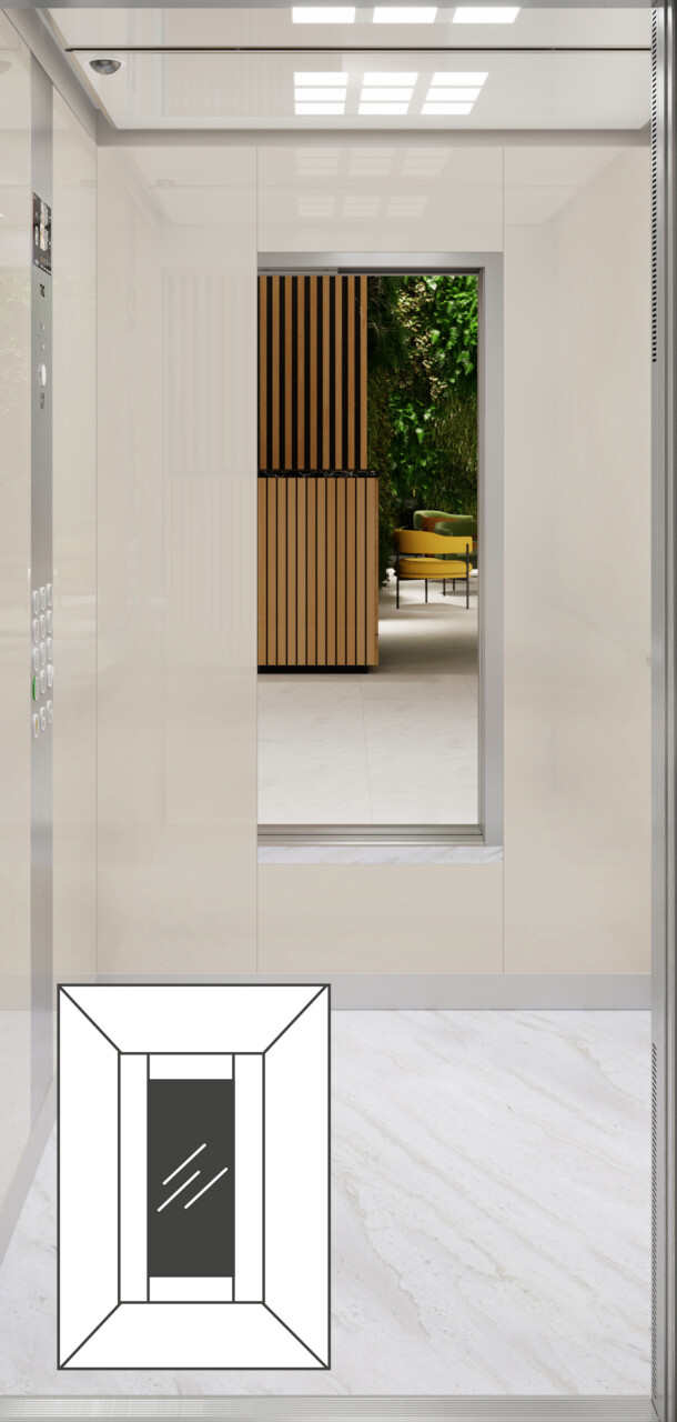 Please note: Images of cabin design elements in this chapter (ceilings, handrails, skirting, mirrors, flooring) are for illustrative purposes and may show surrounding wall finishes and cabin components that are not selectable with EOX ≥2 m/s.