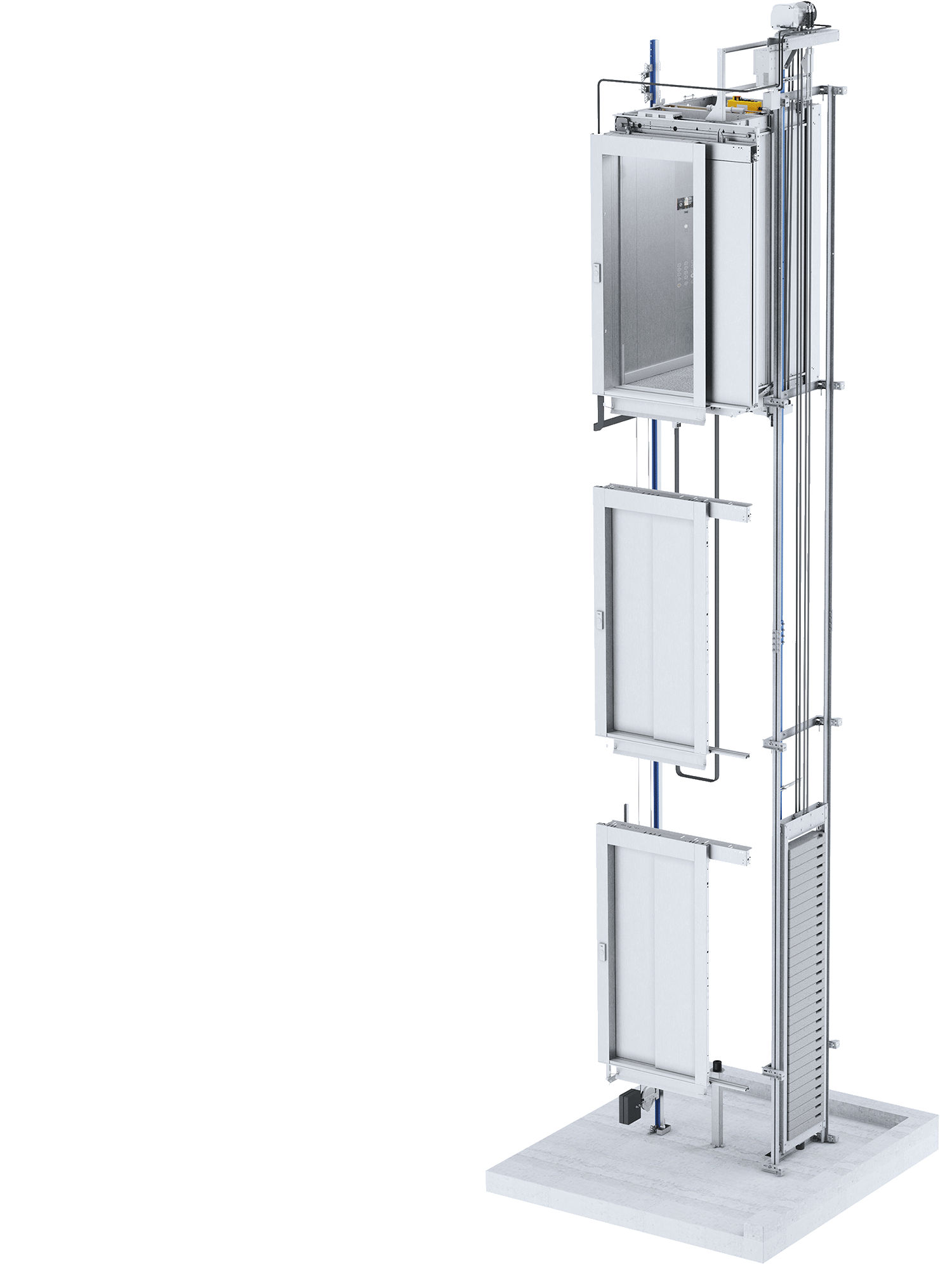 The ultra-compact controller is integrated into the door jamb for easy access, requiring no extra cabinet or attention during shaft construction. Optionally, external installation in a very compact cabinet is also possible.