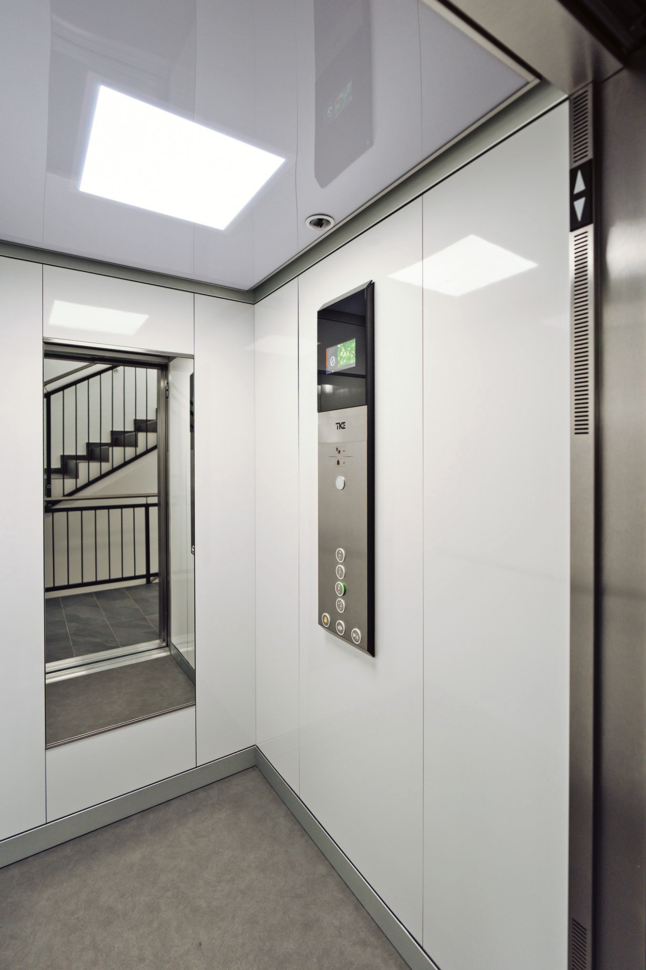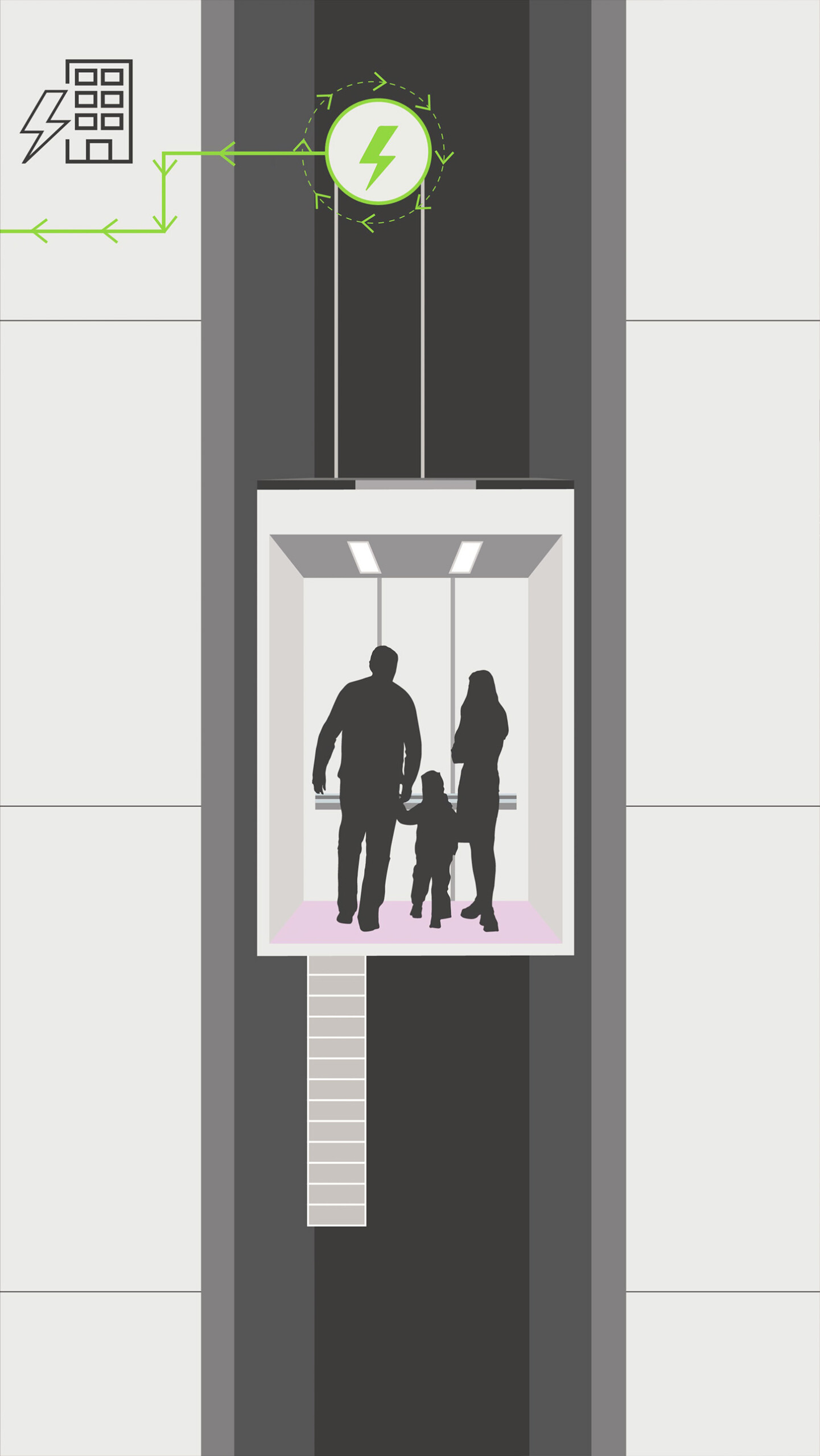 * Class A certified reference elevators: 630 kg, 12 m travel height and 1.000 kg, 32 m travel height in usage category 2 (125 trips per day). The energy efficiency rating of your EOX lift depends on the specific configuration, and the conditions as well as the traffic volume in your building.