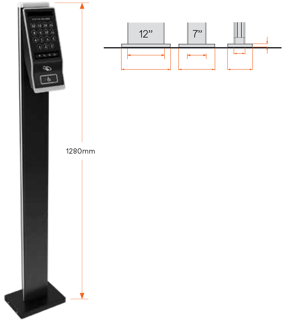 AGILE Terminals are available in two sizes with 7″ or 12″ touchscreen displays with black anodized aluminium frames with frosted silver edges. Terminals can be installed wall-mounted or free-standing on pedestals.