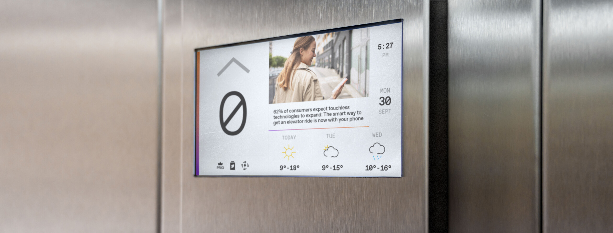 EOX Renew comes equipped with operating panels and indicators from TK Elevator’s Series 30 and Series 50 cabin landing fixtures, including an enhanced version of the Light Moon and Moon cabin operating panels with a 7 inch multimedia display.